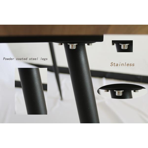 3.This dinner table is equipped with robust steel legs, which makes it highly stable and durable. At the end of legs are installed adjustable-height rubber pad ,protect floor and anti-skid.